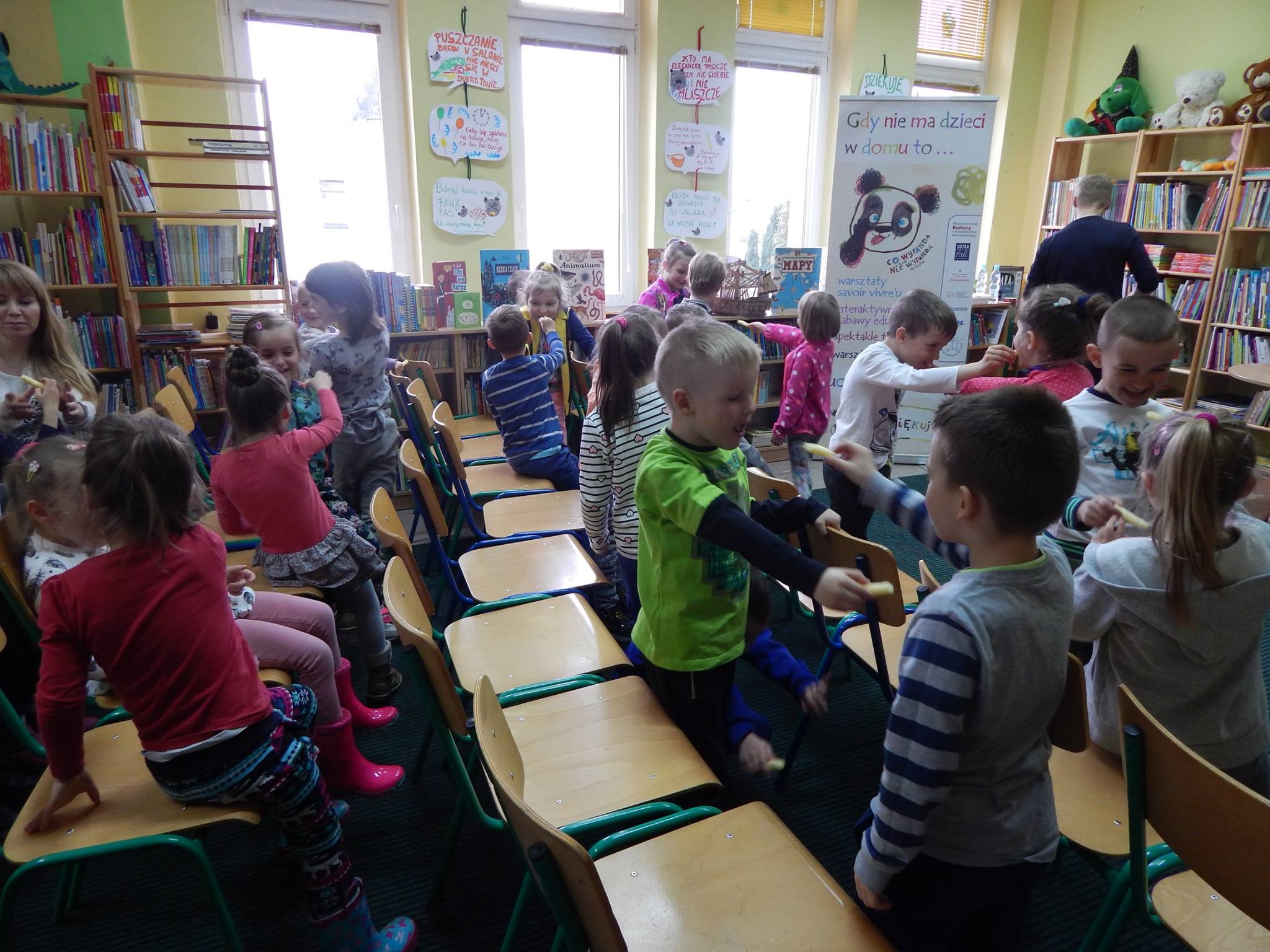 Jesteśmy już po warsztatach „Społeczny Savoir-Vivre, czyli jak nie nadepnąć światu na odcisk” Michała Zawadki. Razem z naszymi przedszkolakami odkrywaliśmy, dlaczego nasze działania są jak domino i co może rozsadzić brak umiaru. Znamy też trudne słowo savoir-vivre i wiemy, że nie pochodzi ono z Japonii ;) Wiemy również, jak trzeba postępować w życiu, aby nie było – kolejne trudne słowo – konsekwencji. Nauka przez zabawę, żarty i interakcję. I o to chodzi!