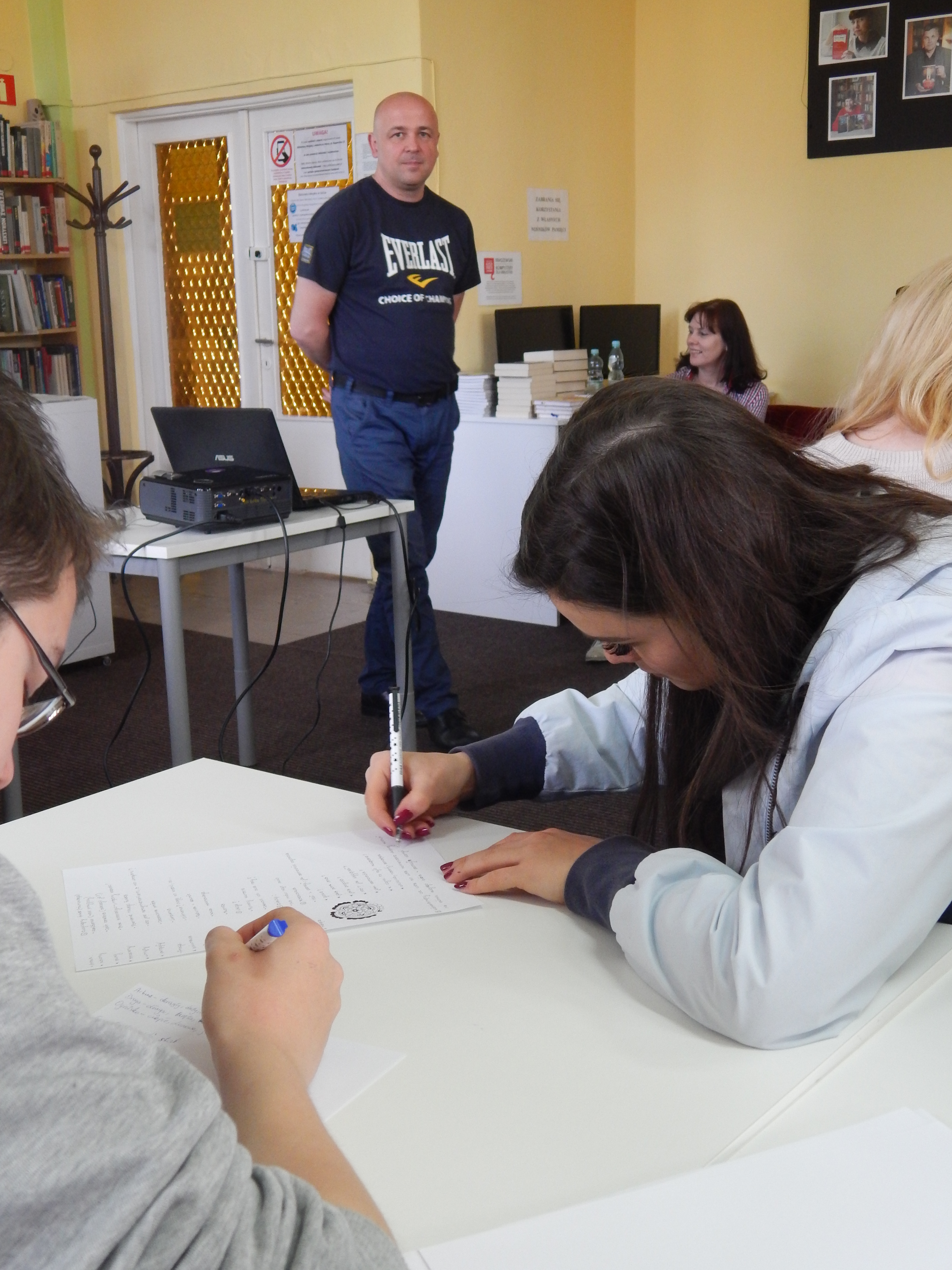 15 maja w ramach projektu #MłodziCzytają zorganizowaliśmy ostatnie już spotkanie warsztatowe. Dariusz Rekosz spotkał się z ustecką młodzieżą z ZSOiT i przeprowadził dla nich Warsztaty Literackie, w czasie których dowiedzieliśmy się jak napisać dobrą książkę lub opowiadanie. Były porady, zagadki, łamigłówki, quizy, kreatywna zabawa tytułami i ... nagrody.