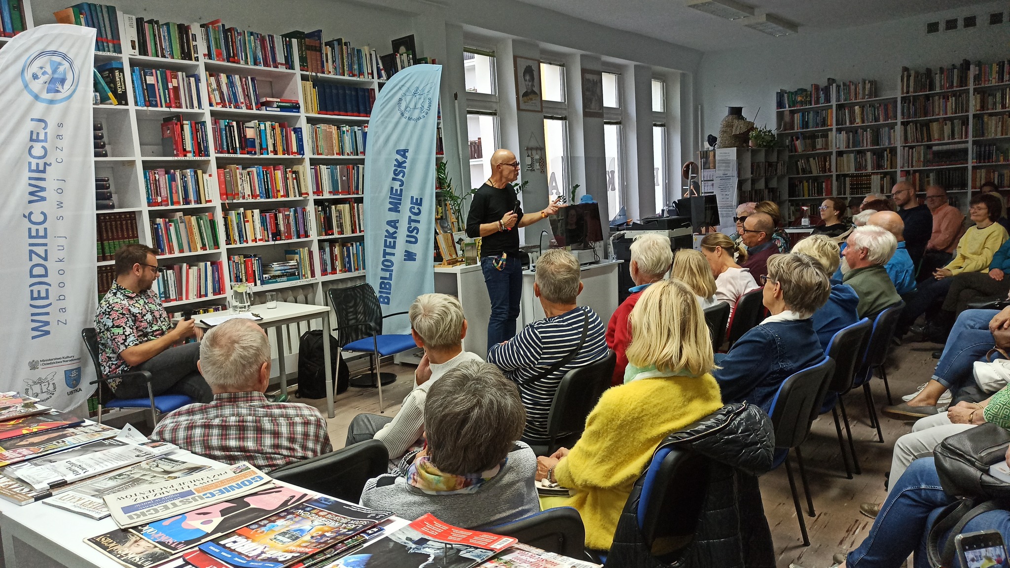 Było o Rosji i Ukrainie, antyszczepionkowcach i karmieniu kaczek rzęsą, reportażu wcieleniowym i szamanach. Wielość podjętych tematów okraszonych wyjątkowym humorem. Rozmowa z człowiekiem z pasją, szalonym reporterem i mistrzem kontaktu. Za nami spotkanie z Jackiem Hugo-Baderem, które poprowadził Mateusz Marecki.