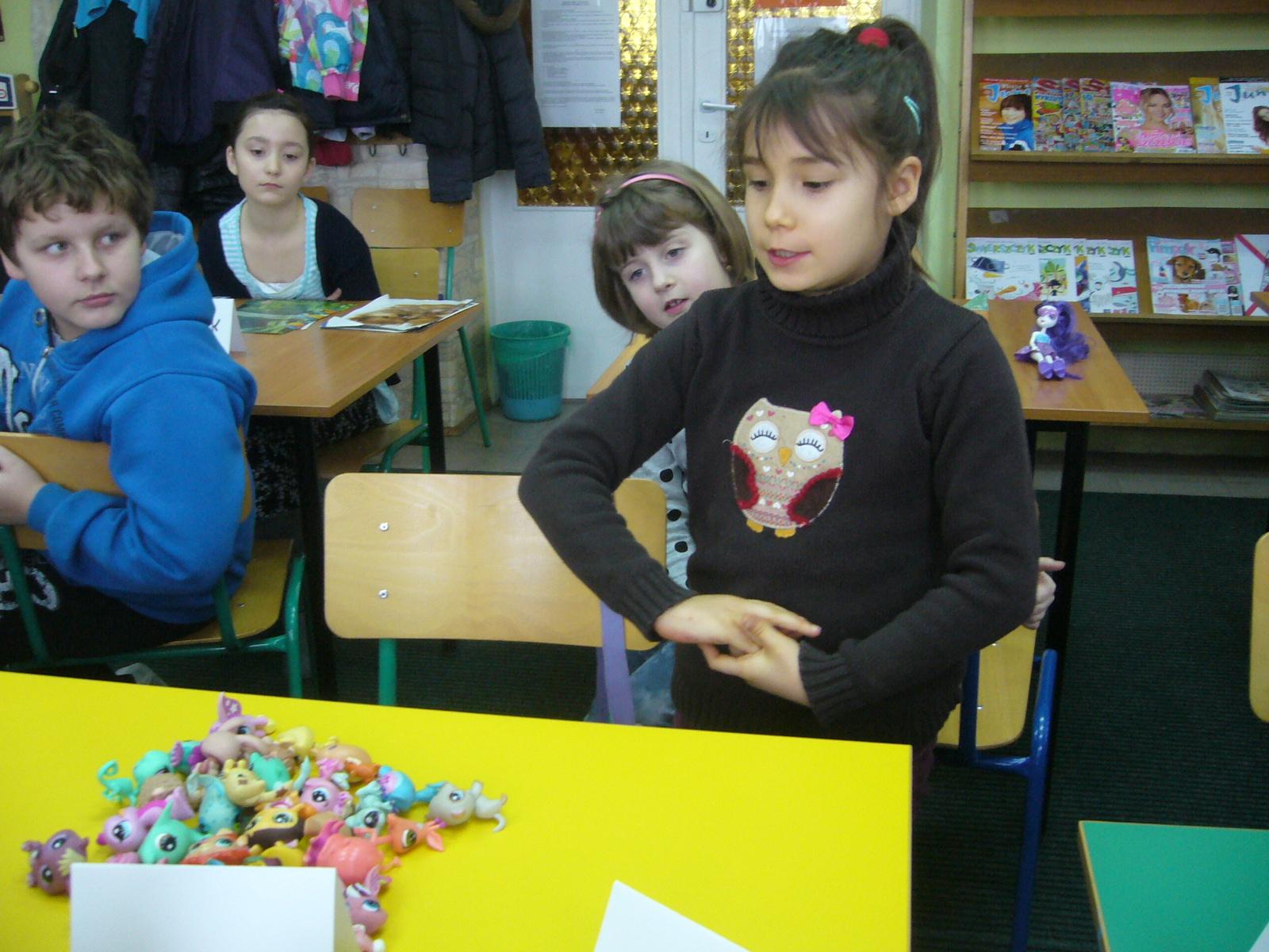 Dzieci miały okazję zaprezentować swoje zbiory. Każdy Kolekcjoner przybliżył zebranym uczestnikom historię swojej kolekcji. Wśród licznych i zarazem niezwykłych zbiorów można było obejrzeć karty piłkarzy, plakaty, maskotki, lalki, pet shopy, przypinki. Liczny zbiór wzbudził wśród uczestników wielkie zainteresowanie . Można było nie tylko pooglądać małe przedmioty, ale również się nimi pobawić! Spotkanie odbyło sie w bardzo miłej atmosferze. Wszyscy uczestnicy wyrazili chęc spotkania w najbliższym czasie.