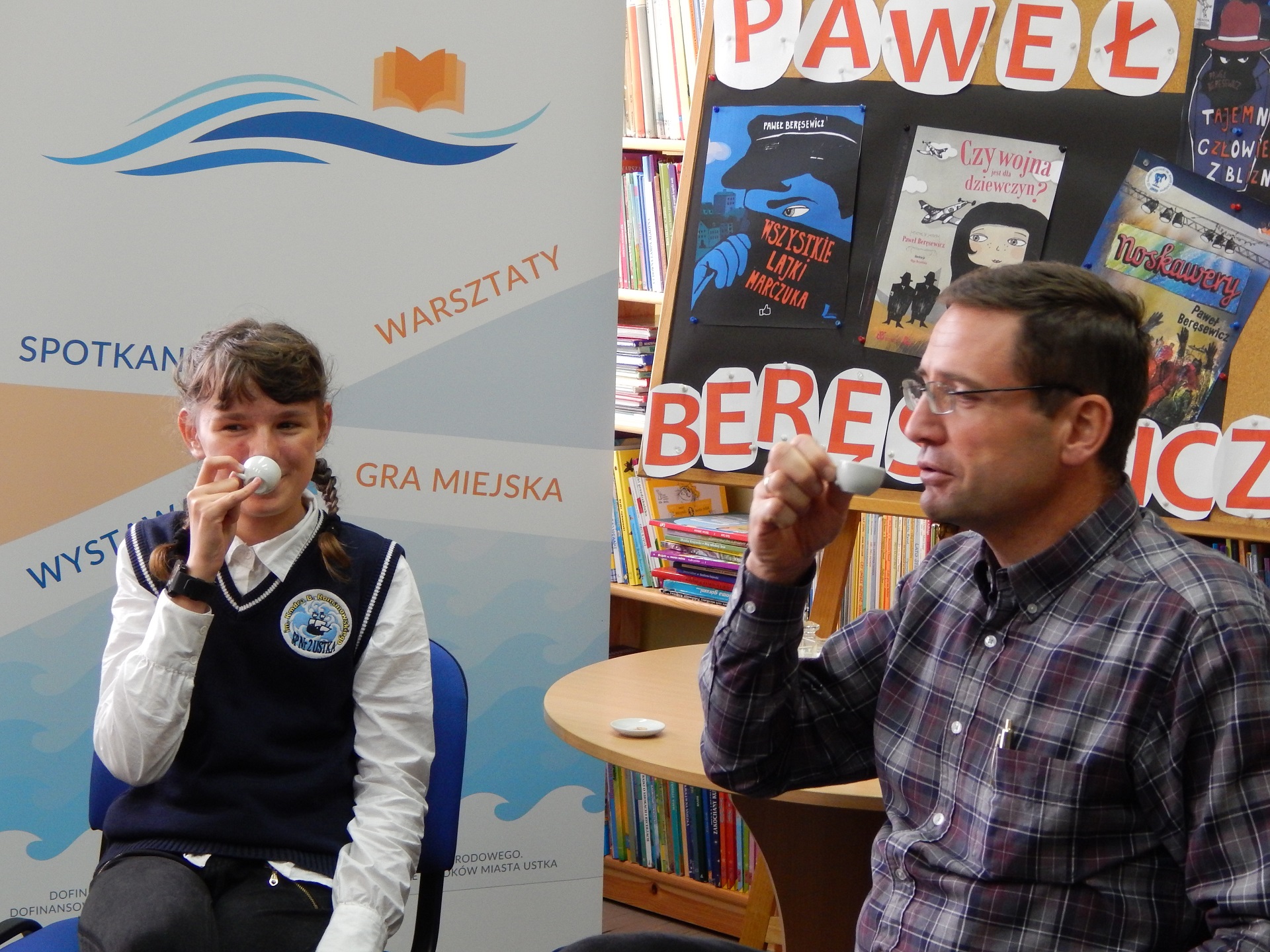 W ramach festiwalu Bałtyckie Klimaty Literackie 14 września gościł w naszej bibliotece p. Paweł Beręsewicz. Autor książek "Co tam u Ciumków?", "Jak zakochałem Kaśkę Kwiatek", "Pan Mamutko i zwierzęta", "Czy wojna jest dla dziewczyn". Pan Paweł w niebanalny sposób rozmawiał o książkach włączając do dyskusji dzieci. Mogliśmy również posłuchać o modzie na noskawery, o pieniądzach i o najmiłośniejszej książce.