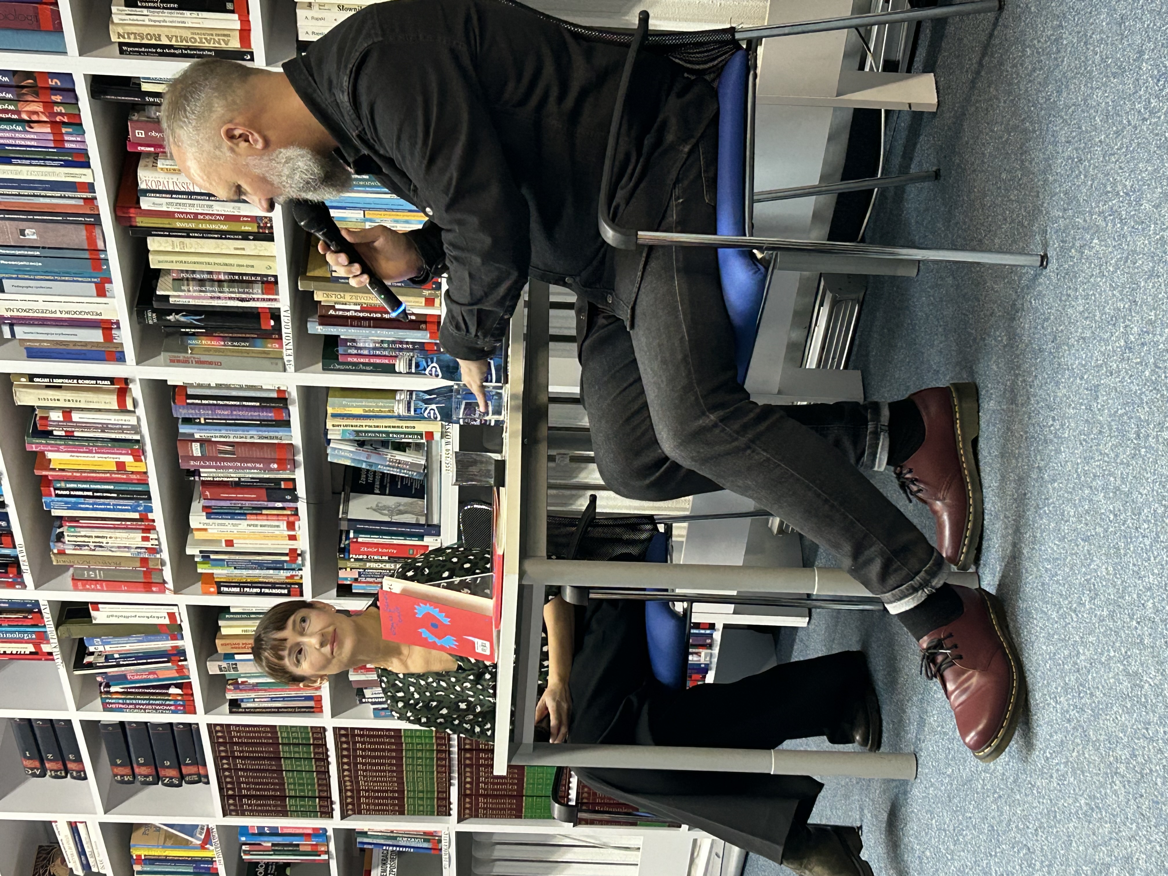 Wyjątkowe spotkanie wokół spektakularnego debiutu literackiego wspaniałej wokalistki Katarzyny Groniec poprowadził w naszej Bibliotece Mariusz Brokos, dziennikarz Polskiego Radia Koszalin. Było o Śląsku i Ślązakach, ich podobieństwach do Kaszubów, muzyce, pandemicznej ciszy, trudności bądź łatwości czytania tej "niepowieści", jej artyzmie językowym i nastrojowości.