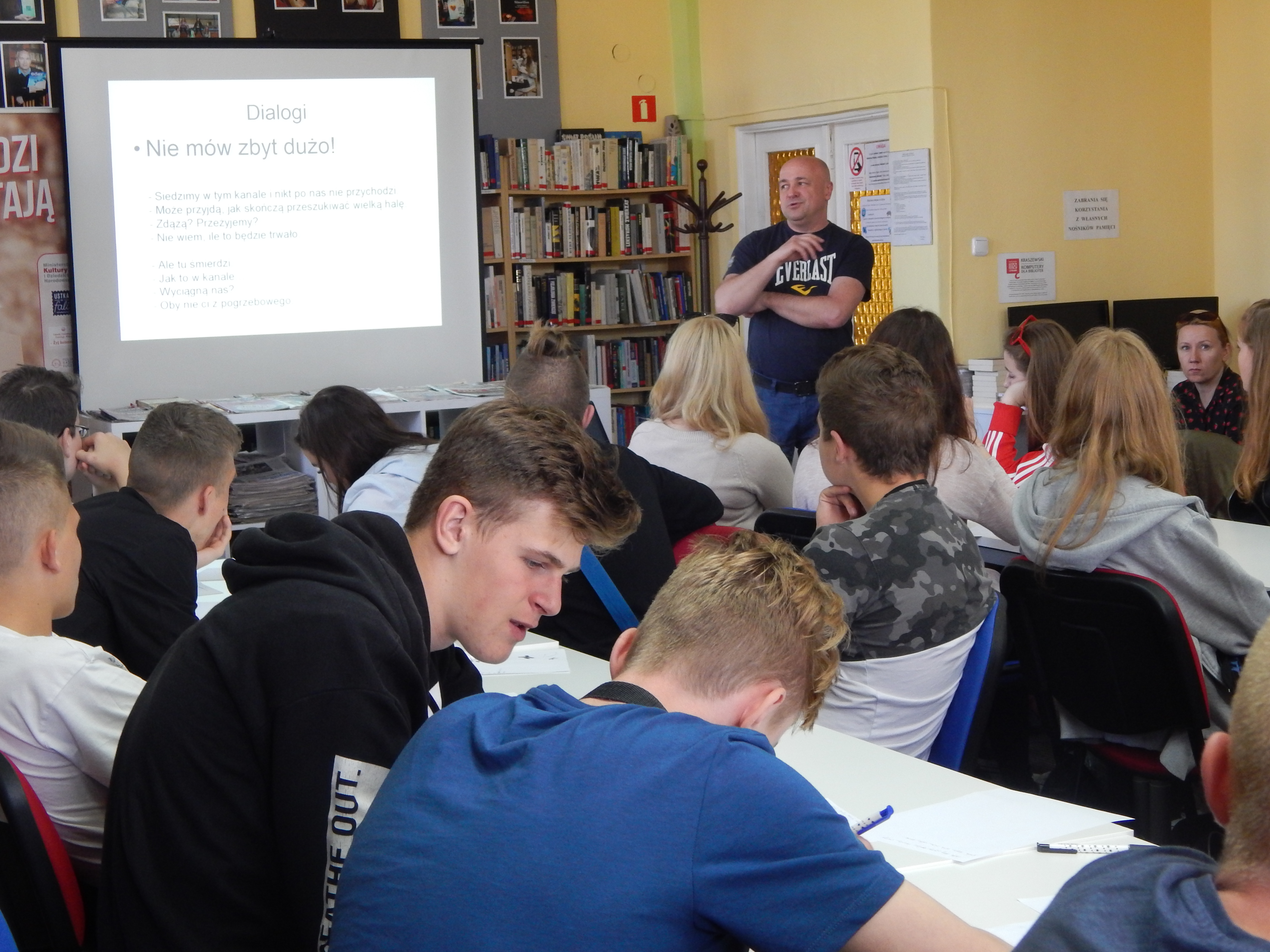 15 maja w ramach projektu #MłodziCzytają zorganizowaliśmy ostatnie już spotkanie warsztatowe. Dariusz Rekosz spotkał się z ustecką młodzieżą z ZSOiT i przeprowadził dla nich Warsztaty Literackie, w czasie których dowiedzieliśmy się jak napisać dobrą książkę lub opowiadanie. Były porady, zagadki, łamigłówki, quizy, kreatywna zabawa tytułami i ... nagrody.